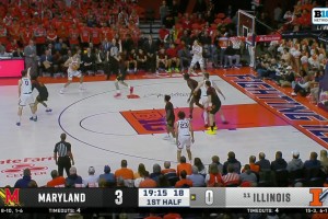 想得太简单!阿门篮下捡板想直接扣被巴洛大帽按下