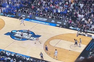 想得太简单!阿门篮下捡板想直接扣被巴洛大帽按下