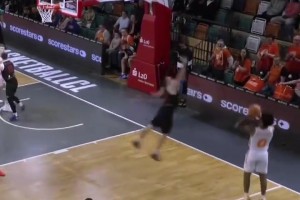 想得太简单!阿门篮下捡板想直接扣被巴洛大帽按下
