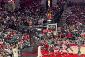 詹姆斯快攻合球撞倒米勒 裁判吹罚防守犯规 黄蜂教练挑战失败
